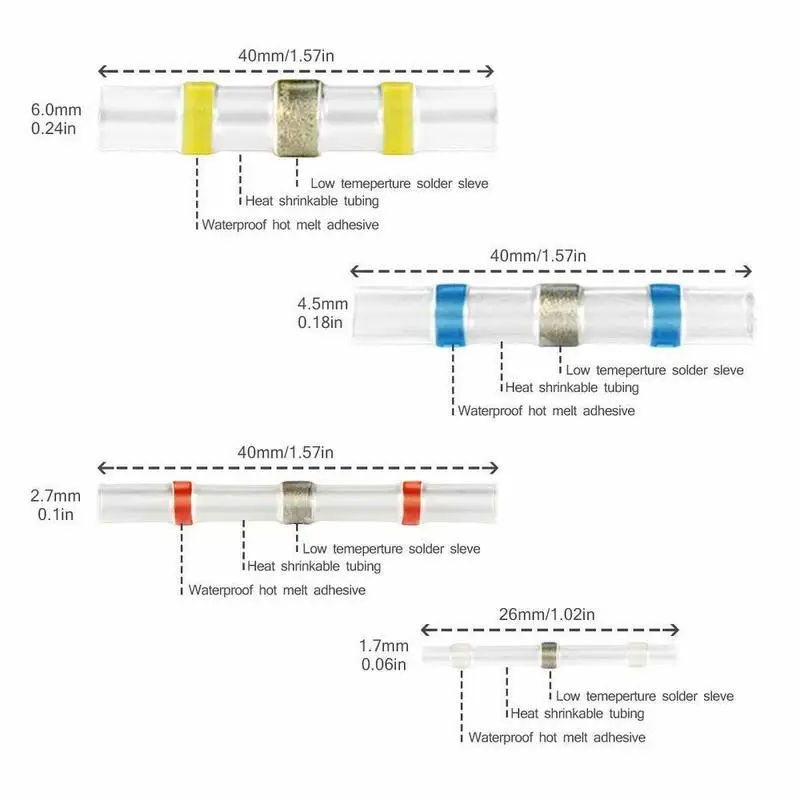 ORIGINAL 200PCS Soldering Sleeve Seal Splice Waterproof Heat Shrink Electrical Wire Connectors Terminals Kit