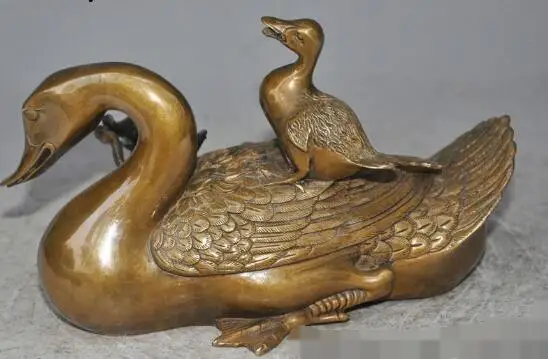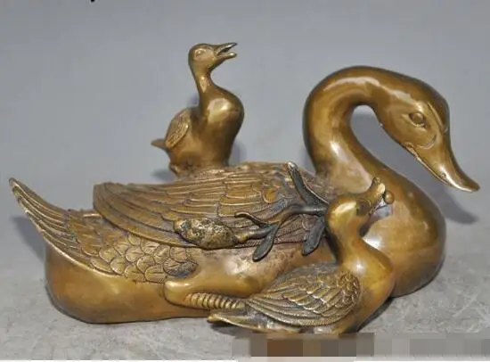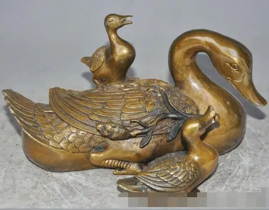 S01173 9"folk China fengshui Bronze Lotus 3 Duck Quack-quack bird family lucky Statue B0403