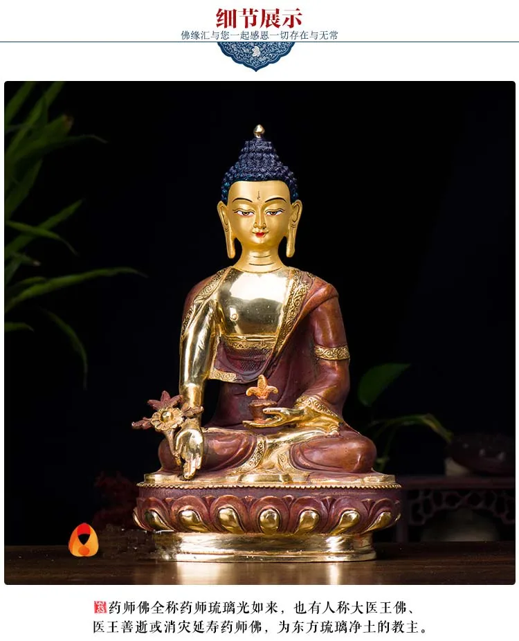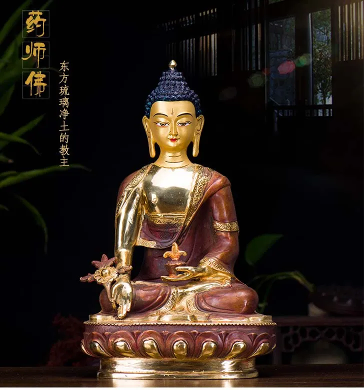 Best Quality 32CM Large GOOD BUDDHA HOME Family efficacious Protection Tibetan Buddhism gilding the Medicine Pha